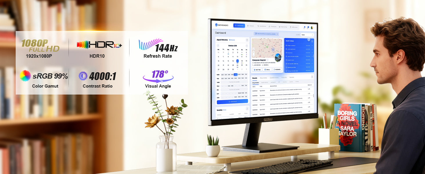【Gaming & Work Ready】This 24 inch gaming monitor delivers fluid visuals with 4000:1 contrast and accurate 99% sRGB for office tasks & casual gaming