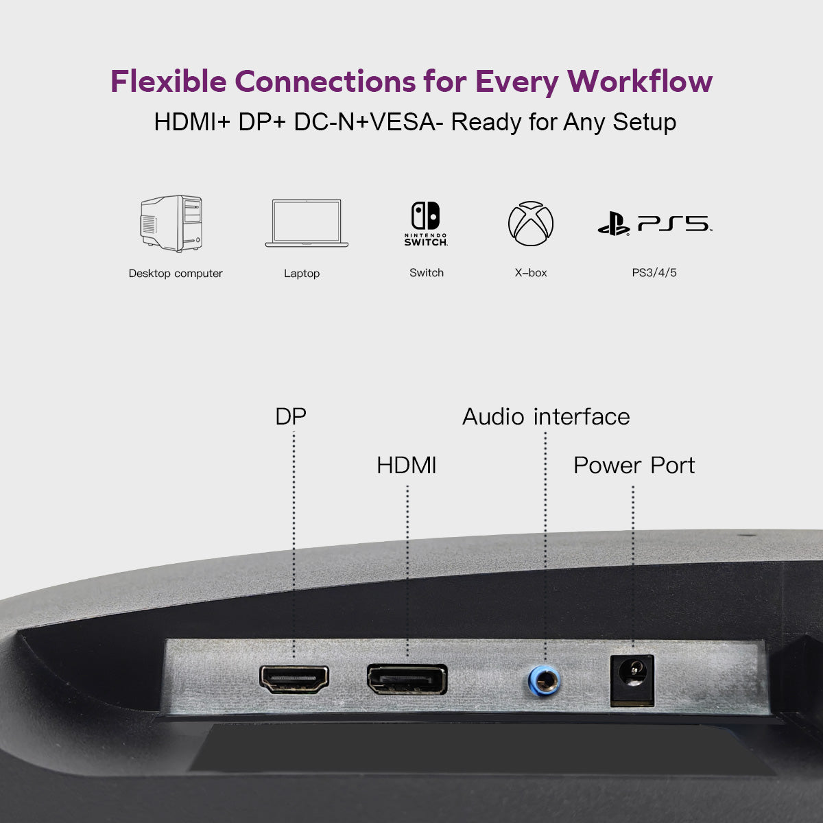 Stable and Focused Viewing - The sturdy square base provides rock-solid stability, ensuring a steady viewing experience during everyday use. The 27 inch pc monitors offers compact offices, home setups, or shared environments. Designed to help you stay focused, organized, and productive